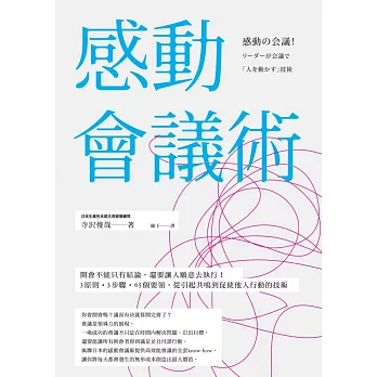 感動會議術:開會不能只有結論,還要讓人願意去執行!3原則‧3步驟‧65個要領,從引起共鳴到促使他人行動的技術購買網址:http://www.books.com.tw/exep/assp.php/87926/products/0010655109?utm_source=87926&utm_medium=ap-books&utm_content=recommend&utm_campaign=ap-201603